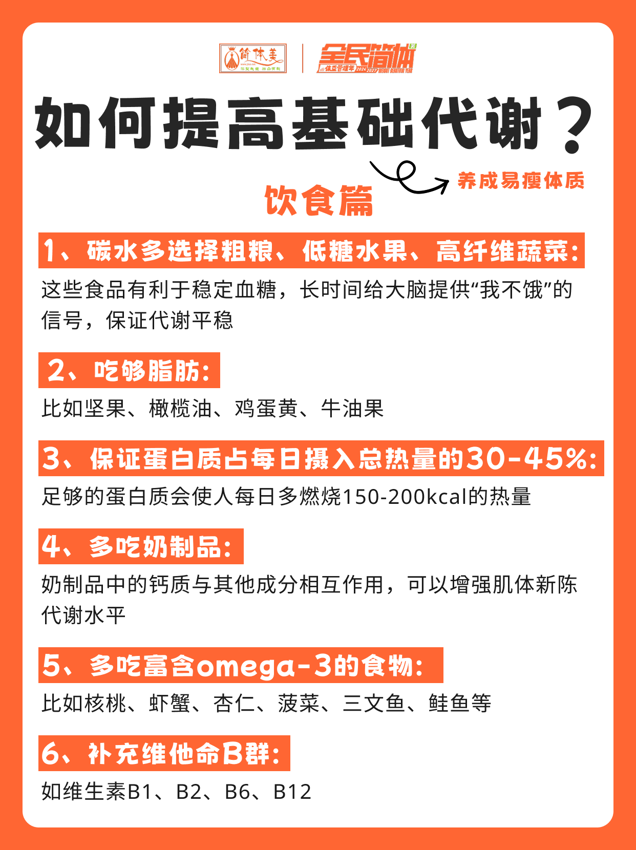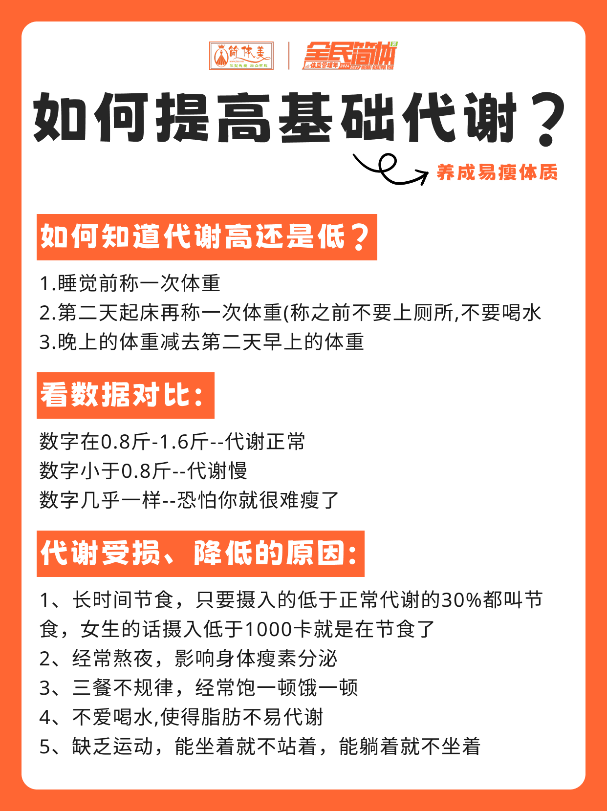 培养健康的生活方式有助于提高基础代谢,具体如图!