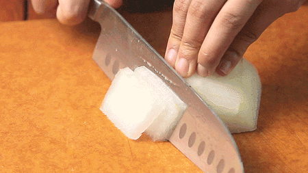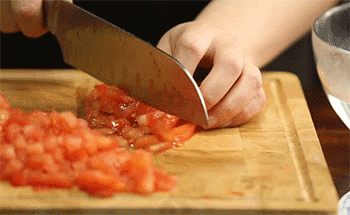 5.西红柿洗净,顶部划十字,放入开水中煮2分钟,捞出去皮切丁。